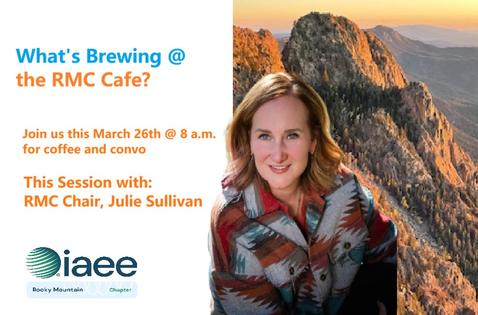 We invite you to the IAEE Rocky Mountain Chapter’s first member café session. Learn what’s happening with the RMC and reflect on the latest industry topics and issues for 2026.